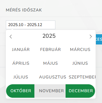 A dátumválasztóhoz hasonlóan itt is megadható egy „-tól–ig” időintervallum. Emellett dupla kattintással lehetőség van egy adott hónap gyors kiválasztására is.